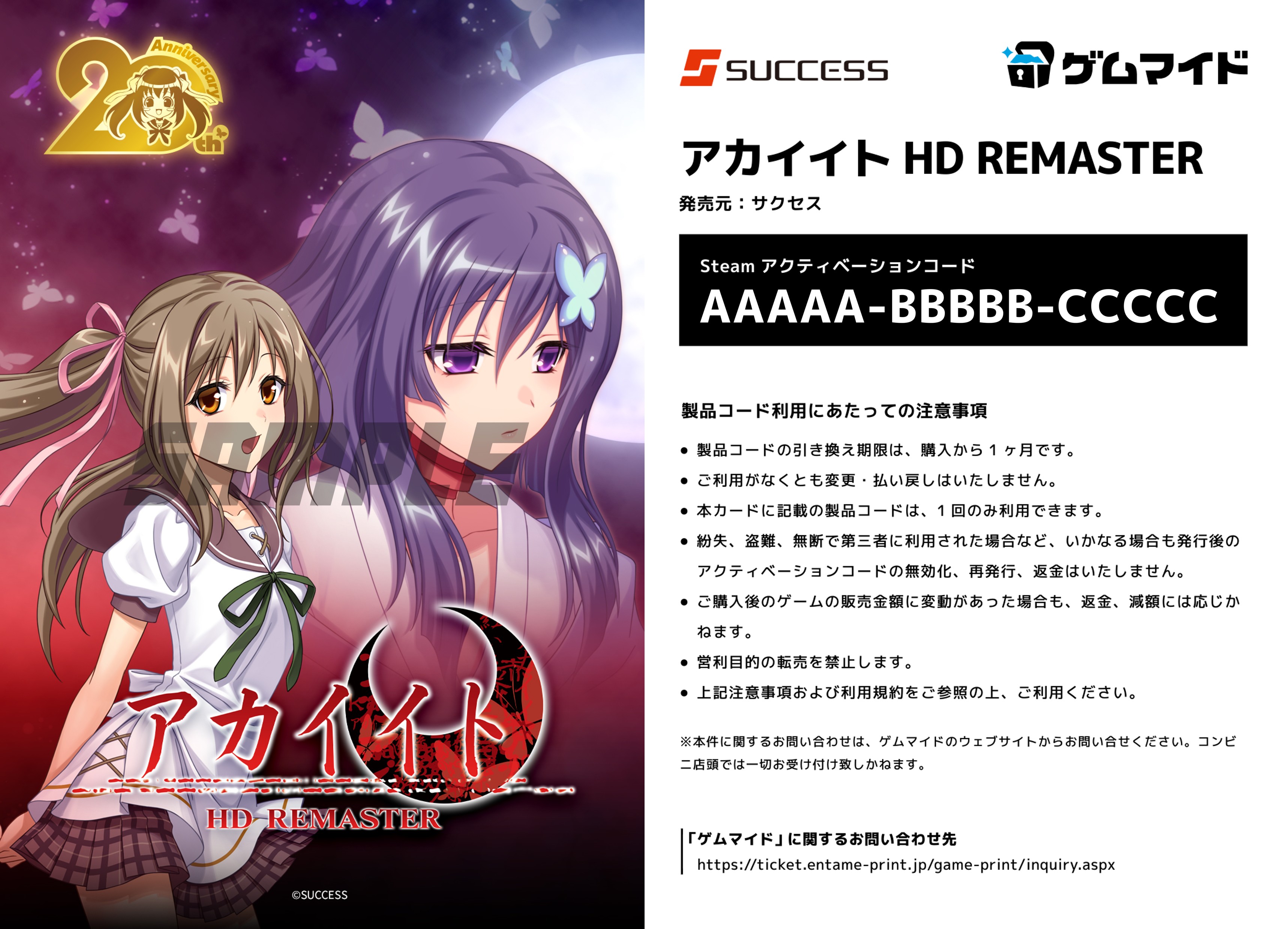 「ブロマイド:L判」と「Steamキー:L判」を合わせて1枚でプリントされます。